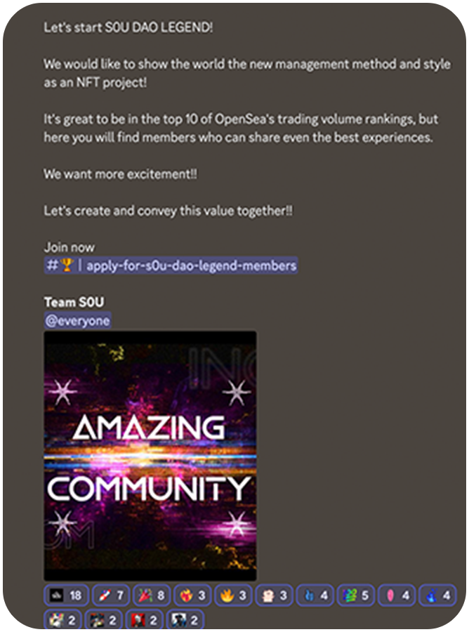 discuss how to grow S0U, and create the project together with S0U NFT holders.